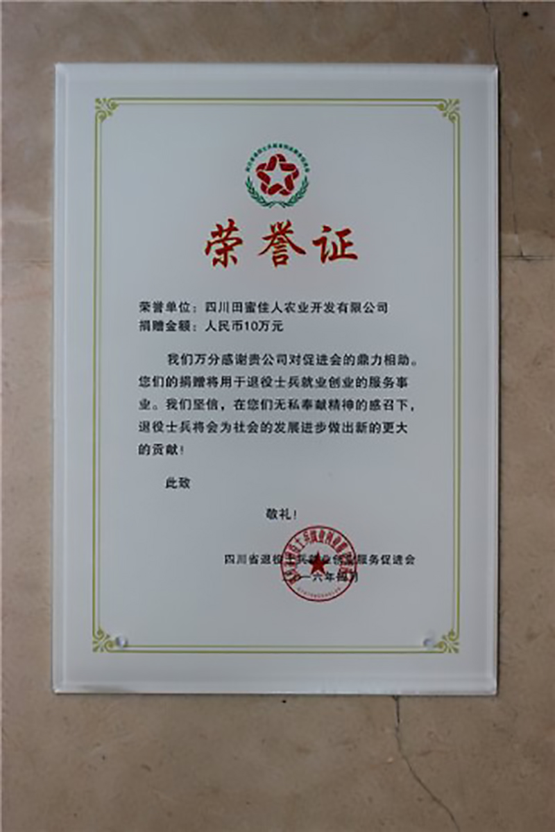 四川田蜜佳人農(nóng)業(yè)開發(fā)有限公司向促進(jìn)會進(jìn)行了捐贈