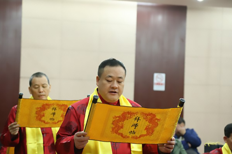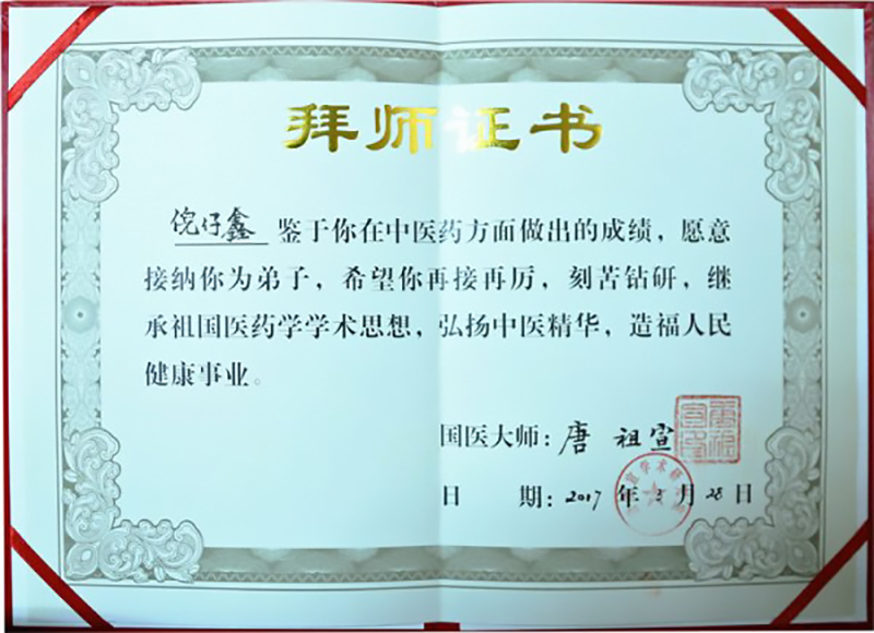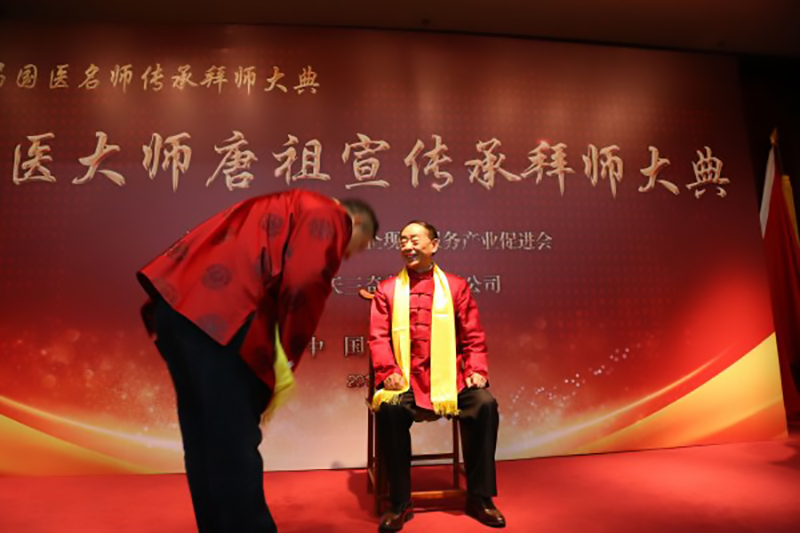 2017年3月28日,在中國中醫(yī)藥界從事多年的北京惠蜂高科董事長倪仔鑫先生以其誠實、勤奮、善良、堅韌、擔(dān)當(dāng)?shù)淖吭饺似泛陀掠诔袚?dān)社會責(zé)任的博大胸懷,帶領(lǐng)集團公司全體同仁研發(fā)出了品質(zhì)卓越的綠色健康蜂產(chǎn)品,贏得了國醫(yī)大師唐祖宣的認(rèn)可,正式被國醫(yī)大師唐祖宣教授收為中醫(yī)藥學(xué)術(shù)傳承弟子。“一日為師,終身為父。師者,傳道、授業(yè)、解惑也”,中醫(yī)界更講究的是師道傳承,德醫(yī)相授。在拜師儀式上,弟子們分別向國醫(yī)大師唐祖宣行鞠躬禮、獻(xiàn)上拜師帖、奉上一杯拜師茶、師徒互贈禮物。