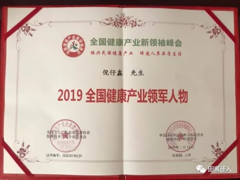 倪仔鑫董事長榮獲“2019全國健康產(chǎn)業(yè)領(lǐng)軍人物”